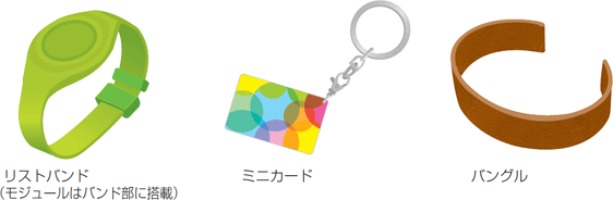 アンテナの小型化を図り、コンパクトな形状を実現したことで、適用範囲が広がります。本製品は、レザー、布(ファブリック)、ラバー、シリコンなどの素材を使った商品への組み込みを考慮し、薄型かつフレキシブル性のある素材を使用しています。また、リストバンド、バングルなど湾曲4)した形状の製品への組み込みも可能です。