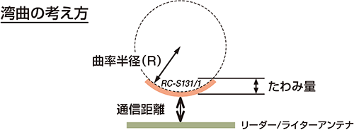 4) 通信性能を確保するため、長辺方向にたわみ量2.2 mm以下(曲率半径R = 35 mm以上)の湾曲とすることを推奨しています。