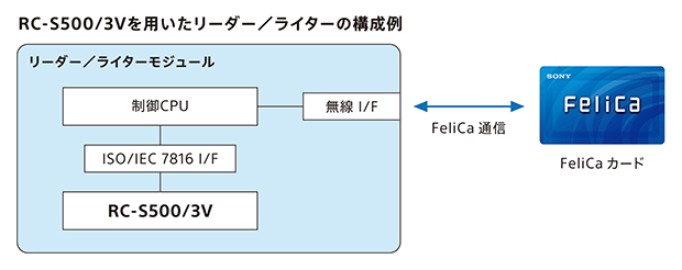 リーダー/ライターモジュールの基板に実装して使用することで、FeliCaのセキュリティ機能を使用したシステムを開発できます。