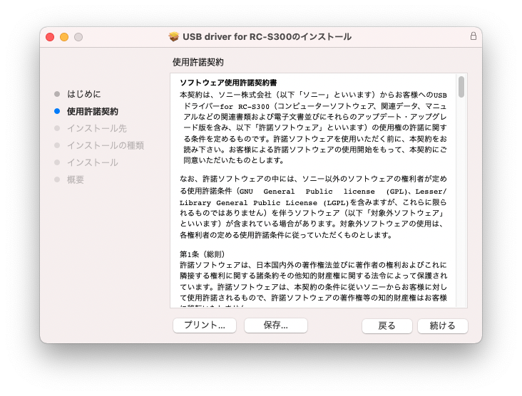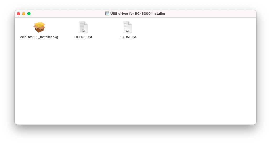 ダウンロードした「USB ドライバー for RC-S300」をダブルクリックしてインストーラーを実行します。