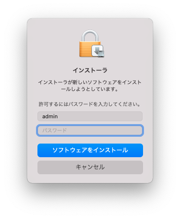 インストールに進み、ユーザー名やパスワードなどが必要な場合は入力してください。