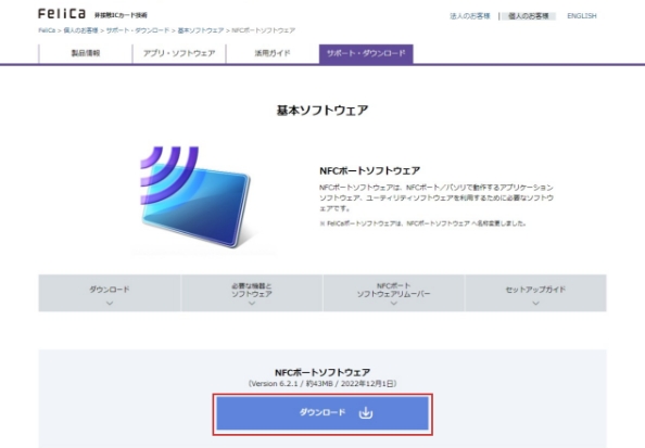 ①NFCポートソフトウェアをダウンロードしてください。