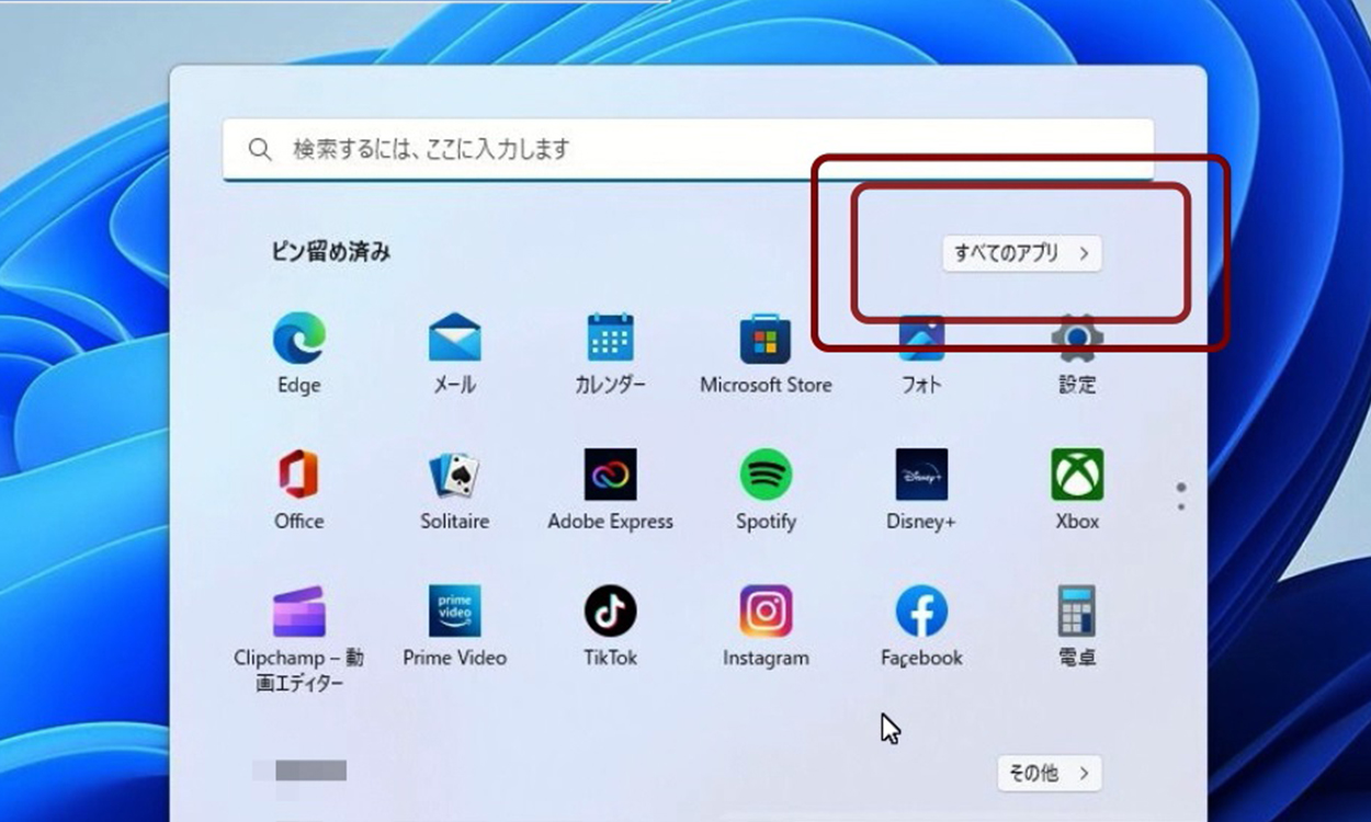 【すべてのアプリ】をクリックします。