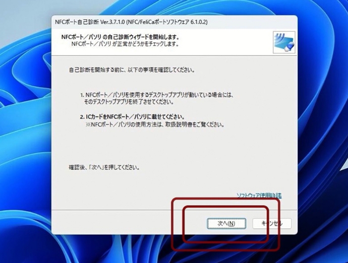 ③画面の指示に従い、NFCポートソフトウェアの