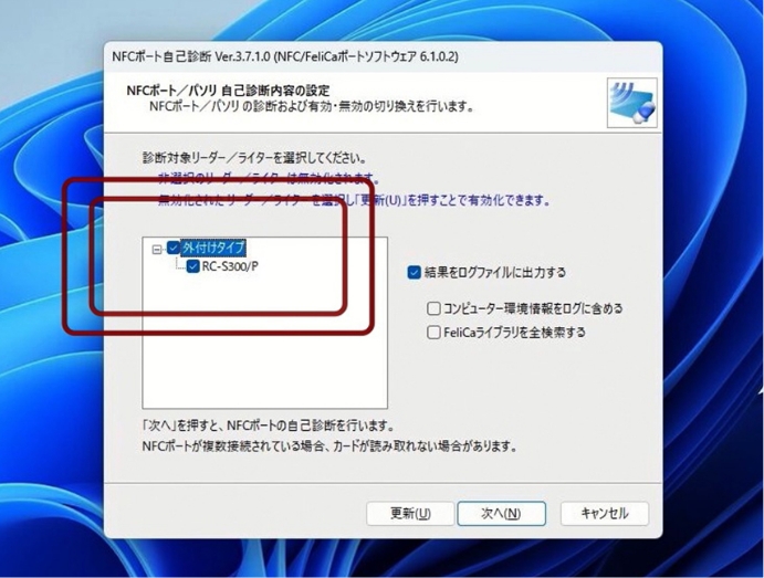 ②【NFCポート自己診断】をクリックします。