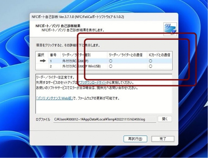 ⑥自己診断結果で【リーダー/ライターとの通信】および