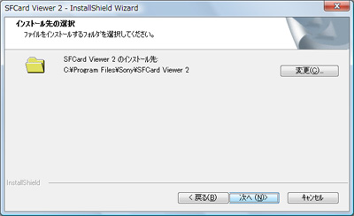 次にソフトウェアのインストール先を指定します。インストールされるフォルダーを変更したい場合は、「変更(C)」をクリックして、インストール先のフォルダーを選択してください。