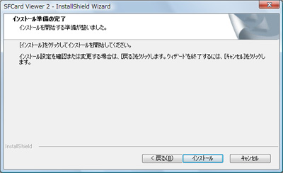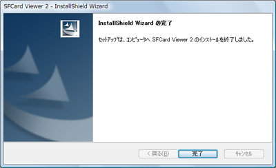 インストールが完了するとその旨を通知する画面が表示されます。以上で「SFCard Viewer 2」をご利用いただく為のセットアップは完了です。