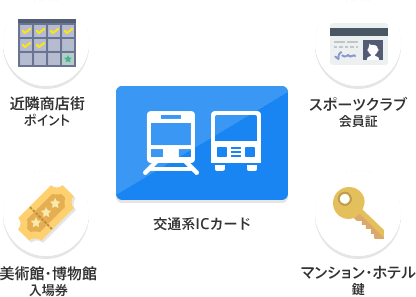 交通系ICカードに搭載されたFeliCaポケットを利用し、ハウスカードとして自社及びグループ会社の複数サービスを1枚のカードに集約することができます。