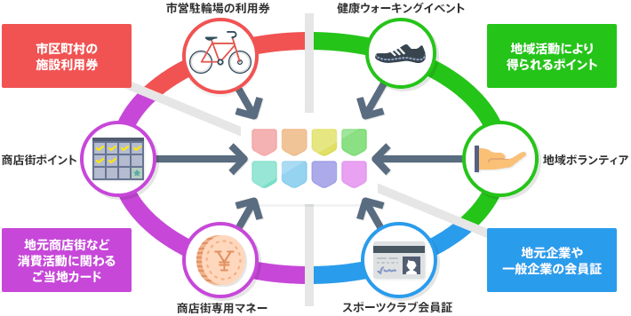法人が異なる駅周辺施設の利用券や会員証、駅前商店街のポイントなどをあとから追加できるため、1枚のカードで地域連携の輪が広がります。
