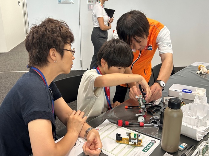 このワークショップでは、安全のため、時にボランティア社員にサポートしてもらいながらも、最初から答えや説明書を渡すのではなく、自身の頭で考えて答えを探りながら、自らの手で分解するということを大切にしています。