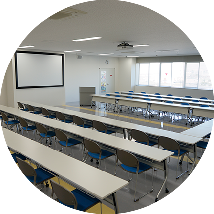 会社概要やリサイクルの仕組みについて紹介。ホールは最大100名まで受入れでき、学校の社会科見学での利用も大歓迎です。
