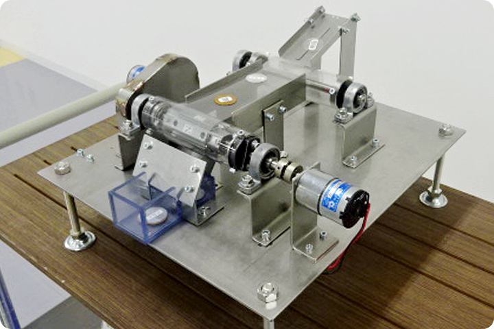手解体のもう一つの目的が、化学物質の適正処理。家電製品に含まれる、フロン、鉛、水銀などの化学物質を、ていねいかつ確実に回収します。(左下の写真は、エアコン室外機のフロン回収の様子)
