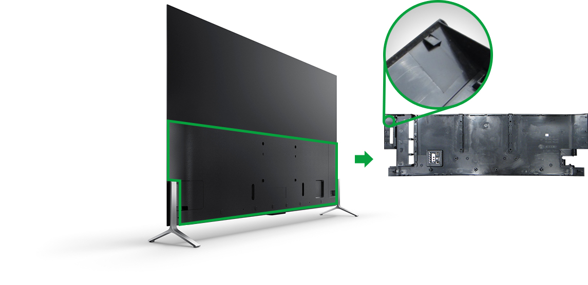 リサイクル研修会を受講した設計者によって、ネジ本数を削減したブラビア®が商品化されました。背面カバーの固定方式を従来のネジ留めから、スライドロック構造に変更しています。