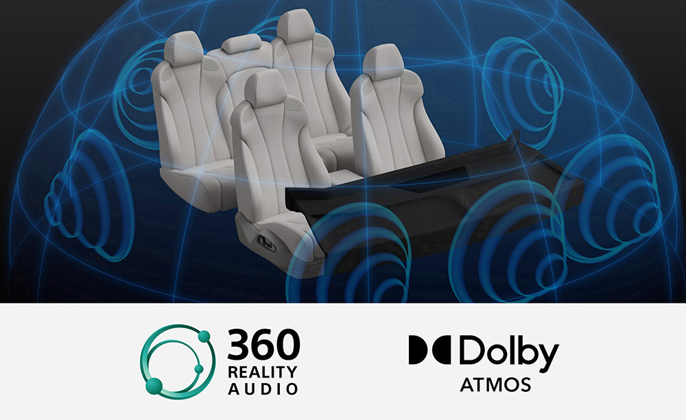 360 Auto Acoustics Cabin is a technology that creates a three-dimensional sound field within the vehicle cabin, powered by Sony’s proprietary deep neural network-based sound source separation and spatial synthesis technology (Monopole Synthesis). Whether the content comes from stereo sources or immersive formats such as 360 Reality Audio or Dolby Atmos®, it delivers a high-quality 3D audio experience with exceptional realism and immersion.