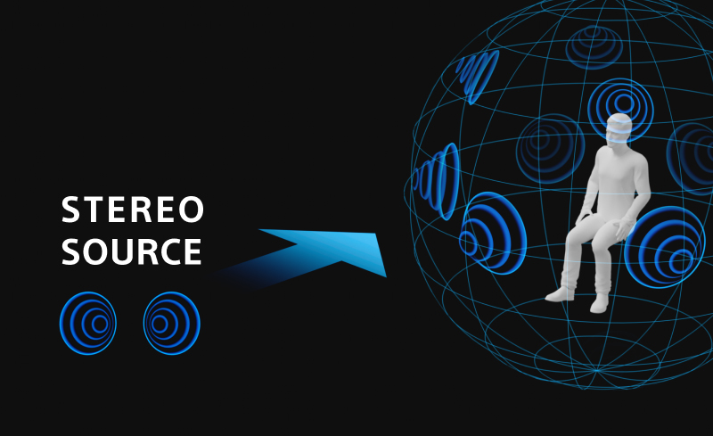 By upmixing 2-channel stereo audio into 3D, it creates a spatial sound environment with enhanced realism and immersion.
