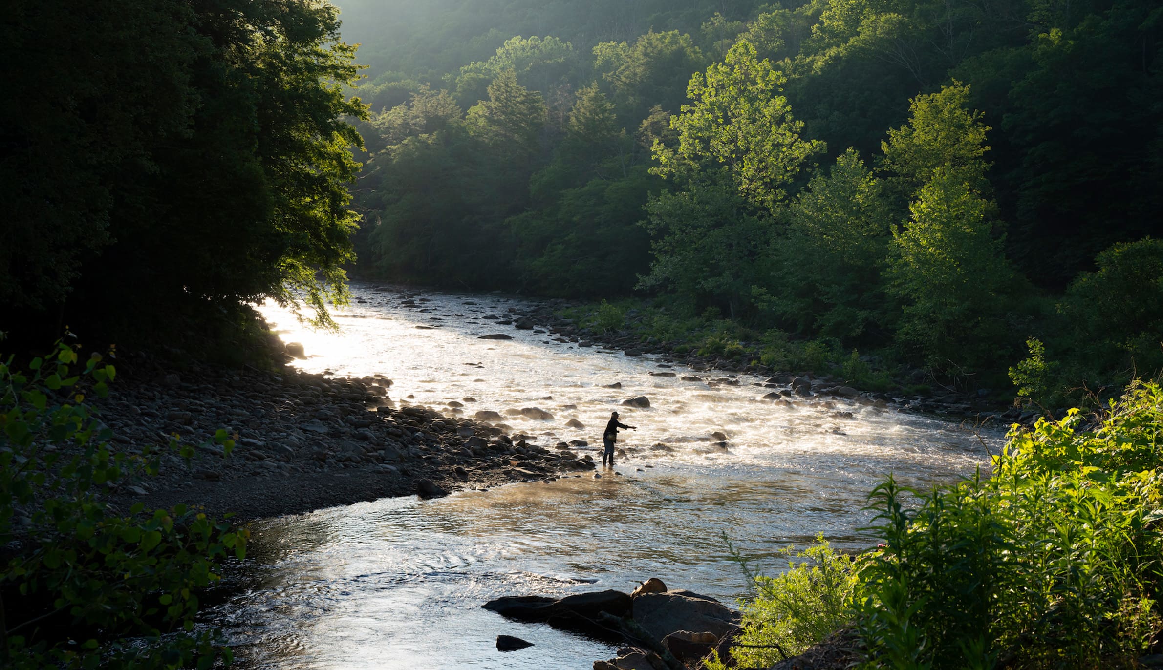 A fly fisherman casts in a healthy stream in the heart of Pennsylvania.