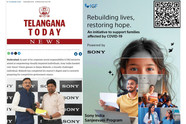 As part of its CSR efforts to empower for the Person with a visual disability, SID has selected beneficiaries across 21 branches and gifted the Smart Vision glasses, designed to assist in navigating surroundings, detecting obstacles, reading printed and digital text in multiple languages, and accessing emergency support features. In addition, The Covid pandemic continues to leave many families vulnerable, especially those who lost breadwinners. Focusing on healthcare, education and skills to help these families to rebuild with dignity, SID partners with M/s Impact Guru Foundation and launched "Sony India Sanjeevani" program. The program will offer financial and resource assistances to the affected families, with due diligence conducted to assess each application.