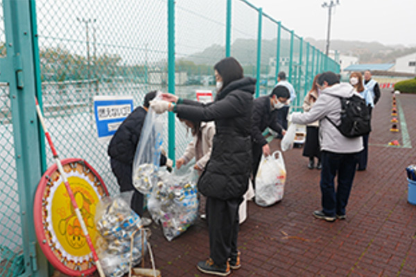 Cleanup activities were conducted around the Kisarazu Site in March. We concerned about the weather, but the rain stopped before the event, and the event was carried out as scheduled. 142 employees voluntarily participated and collected 60 kg of garbage as we did last time.