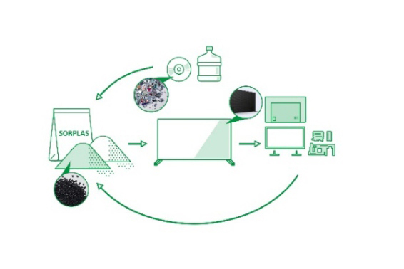 使用済みテレビの部品を原材料とするSORPLAS™※1 を、ブラビア®の部品に再利用