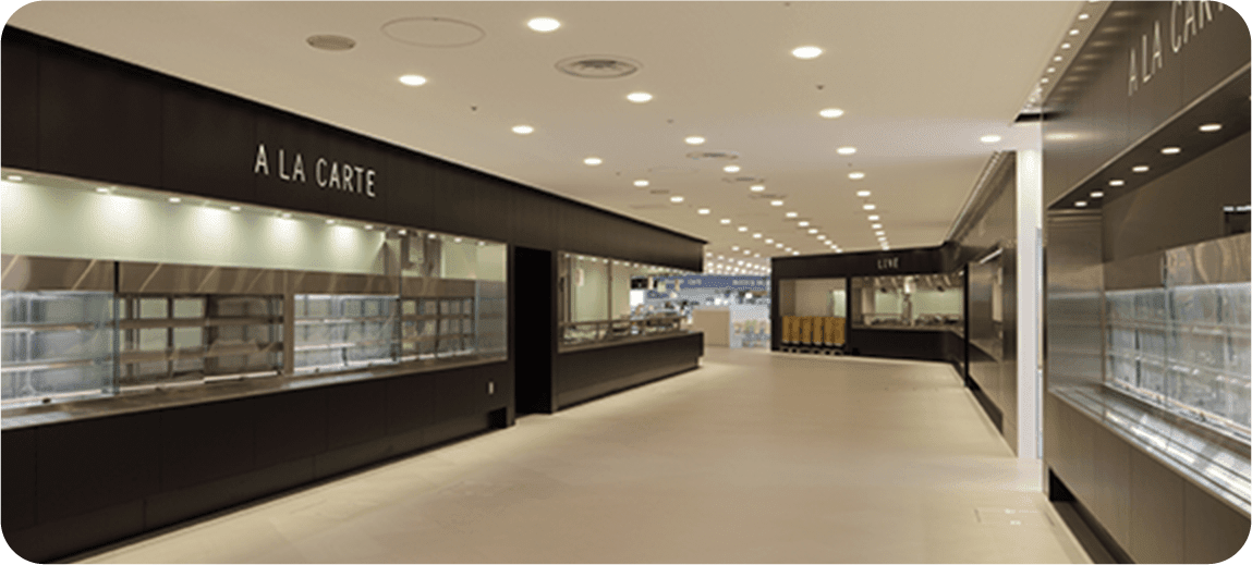 メニューにはメインやうどん、そば、ラーメン、パスタなどの